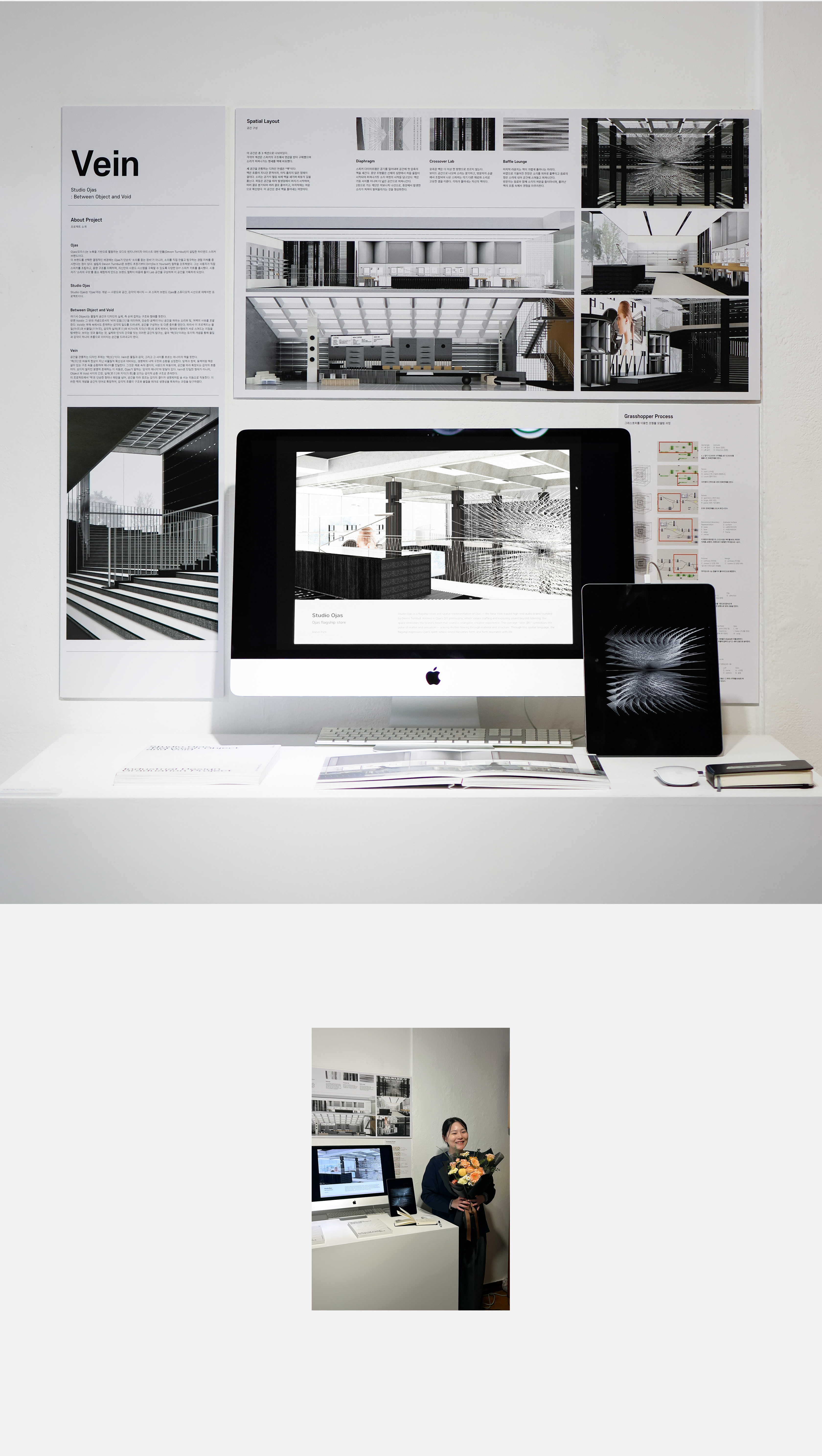 Studio Ojas is a flagship store and spatial reinterpretation of Ojas — the New York–based high-end audio brand founded by Devon Turnbull. Rooted in Ojas’s DIY philosophy, which values crafting and exploring sound beyond listening, the space embodies the brand’s belief that sound is a tangible, creative experience. The concept “Vein (脈)” symbolizes the pulse of matter and sensation — a living rhythm flowing through material and structure. Through this spatial language, the flagship expresses Ojas’s spirit: where sound becomes form, and form resonates with life.