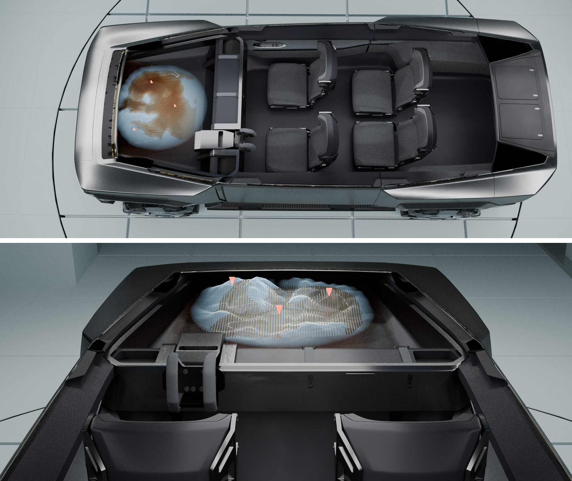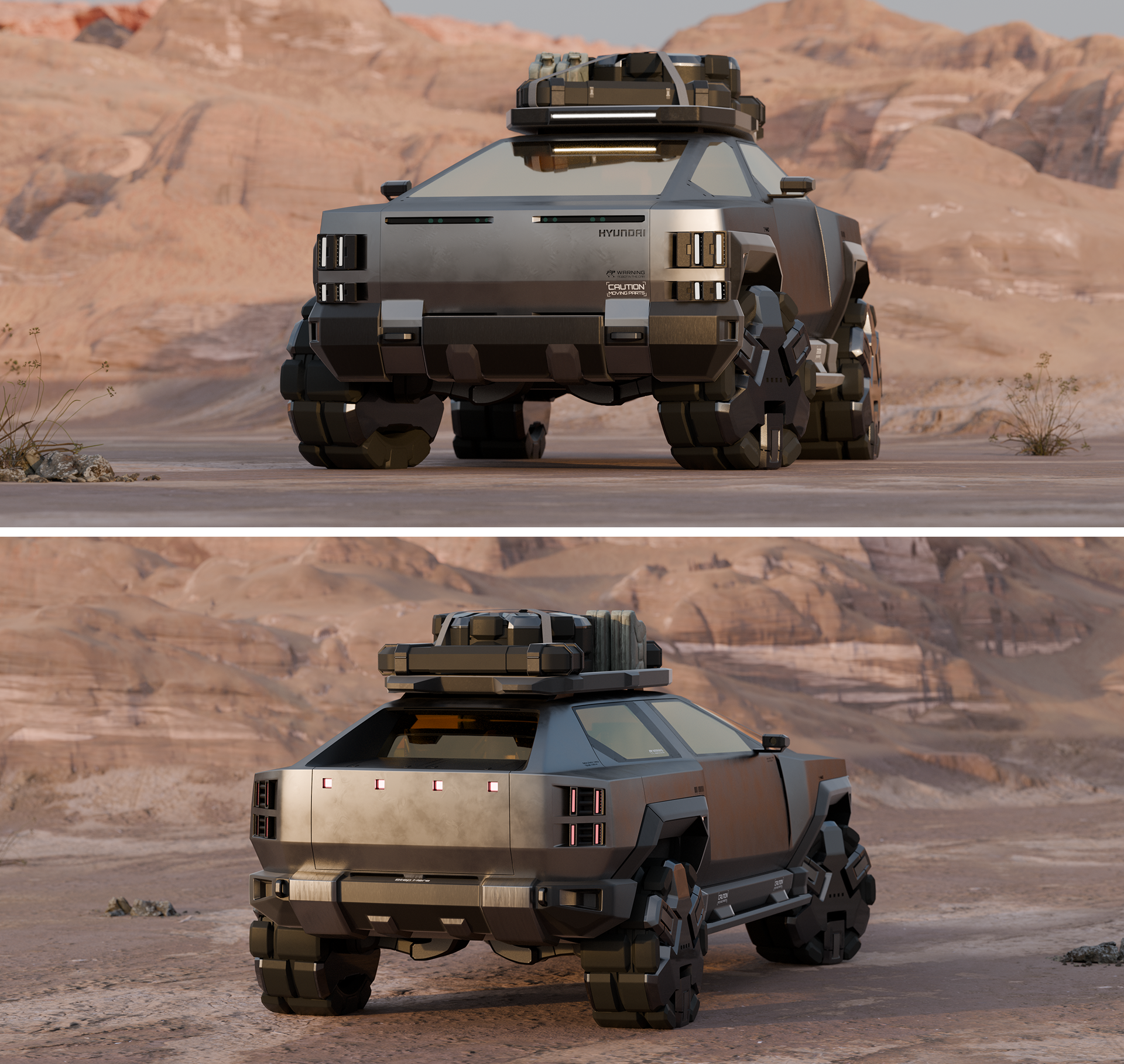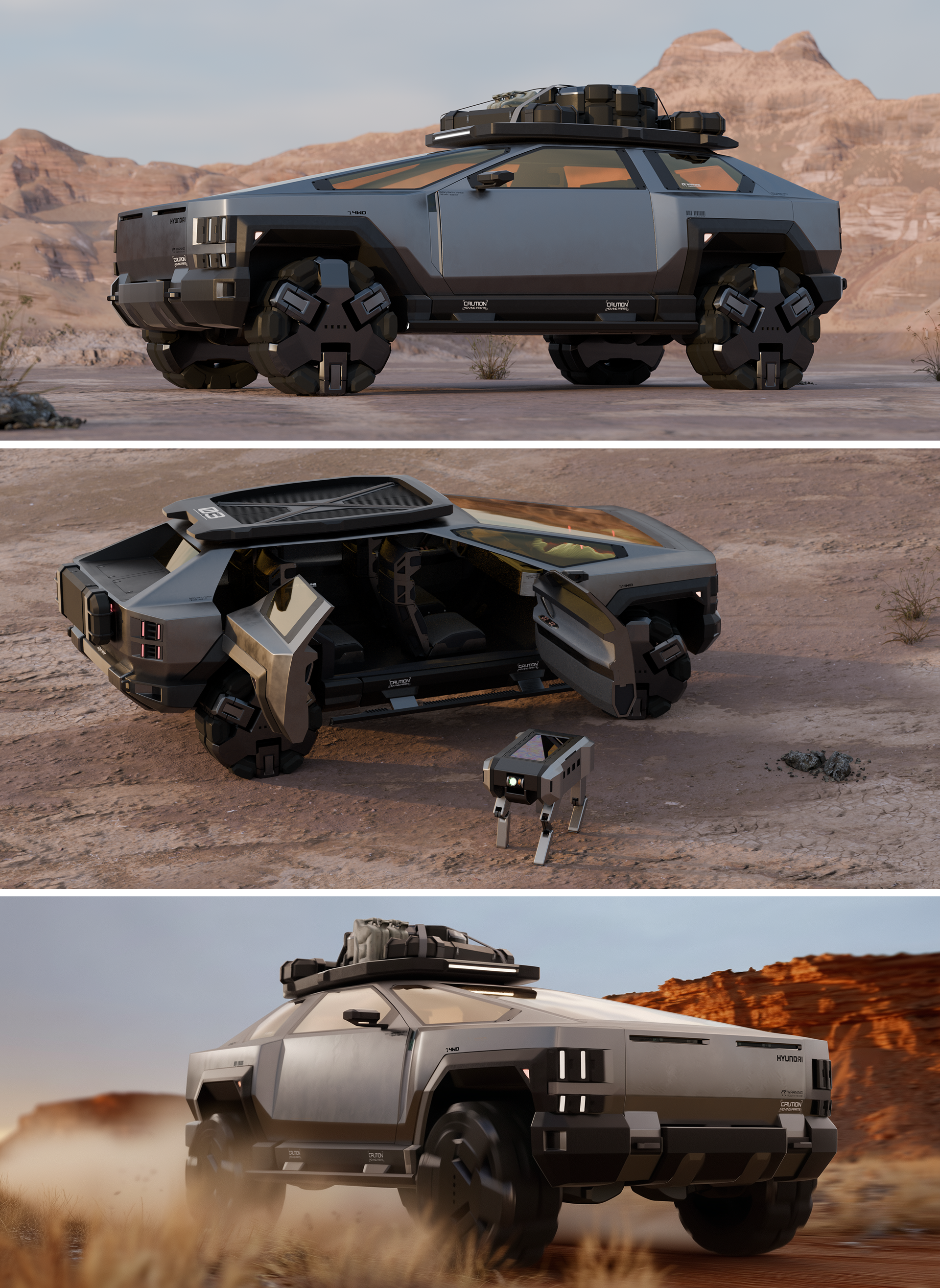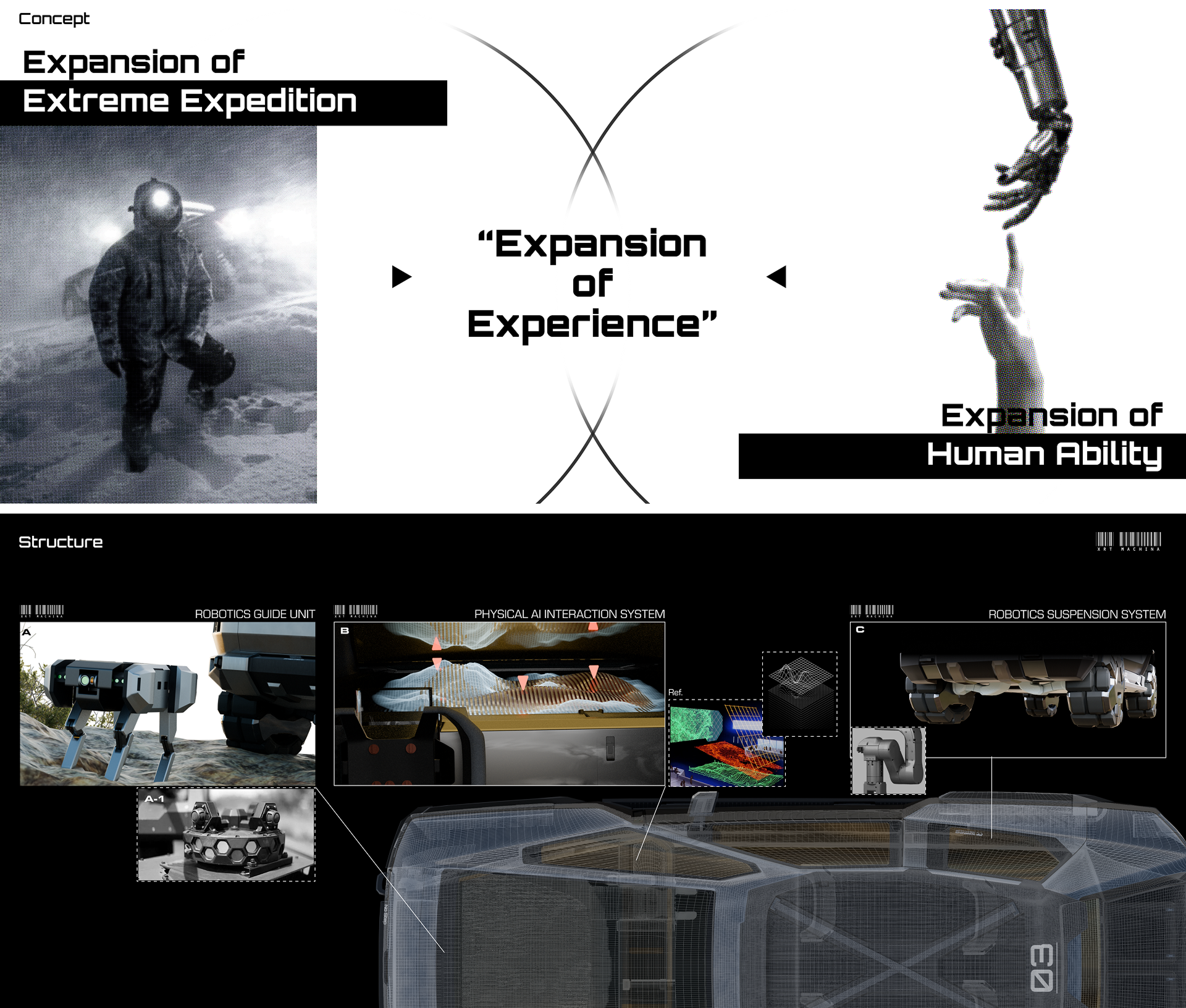 In this concept, the user expands their abilities and senses through the vehicle and its robotics, accumulating personal narratives and experiences in places where others cannot reach.