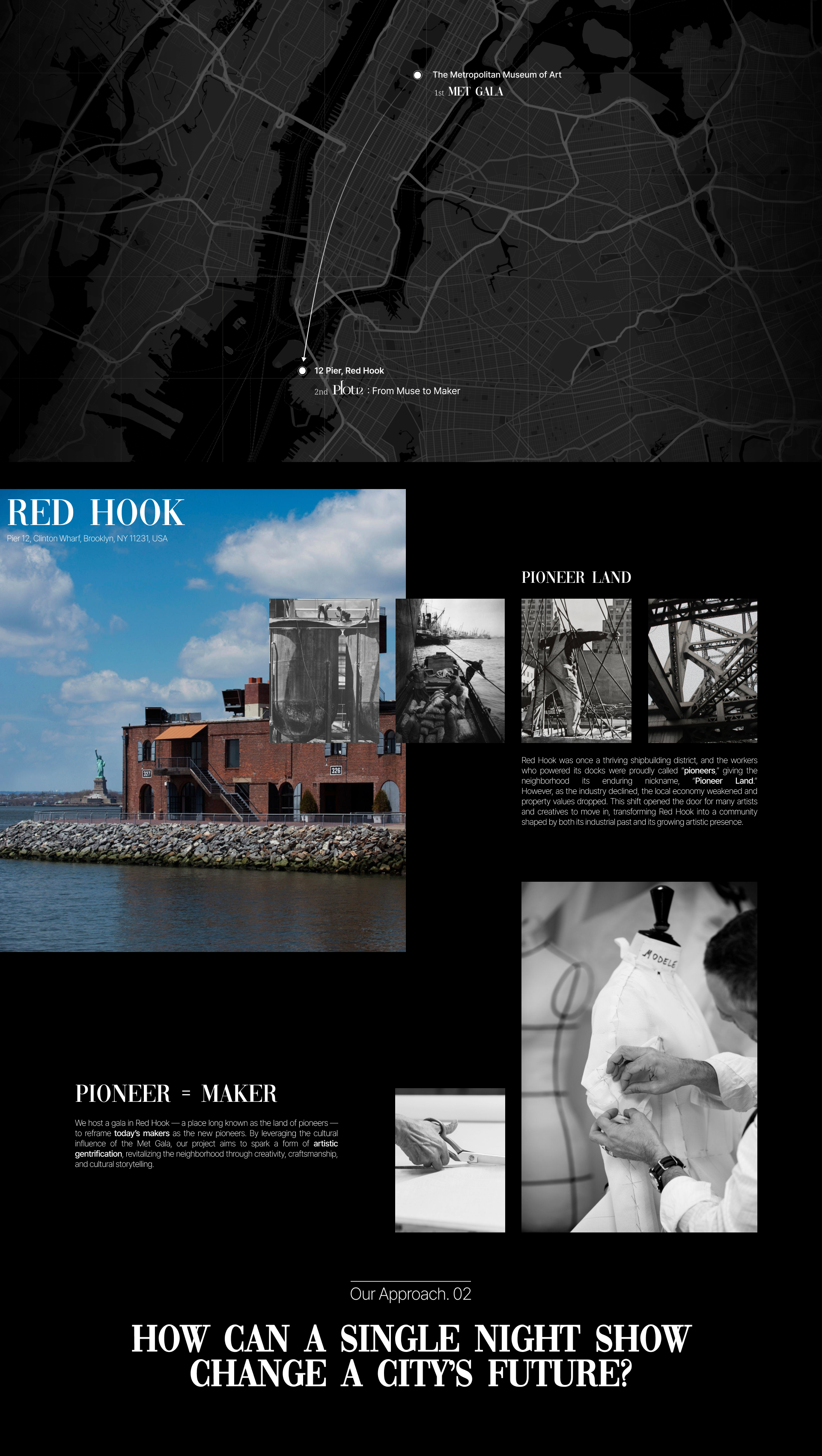 By connecting the Met Gala’s global influence with the local context of Red Hook, the project transforms fashion into a platform for cultural experimentation and community revitalization.